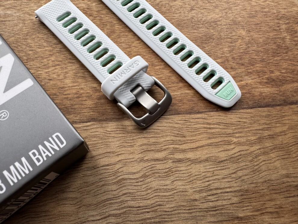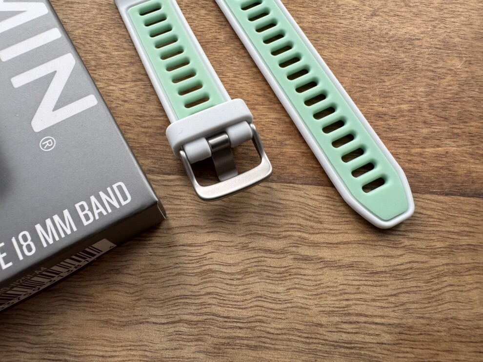 Добавьте строгости своему стилю вместе с покупкой оригинального силиконового ремешка Garmin Quick Release 18 mm цвета Whitestone / Neo Tropic with Silver