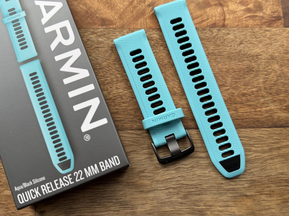 Добавьте яркости своему стилю вместе с покупкой оригинального силиконового ремешка Garmin Quick Release 22 mm Aqua/Black with Slate Hardware